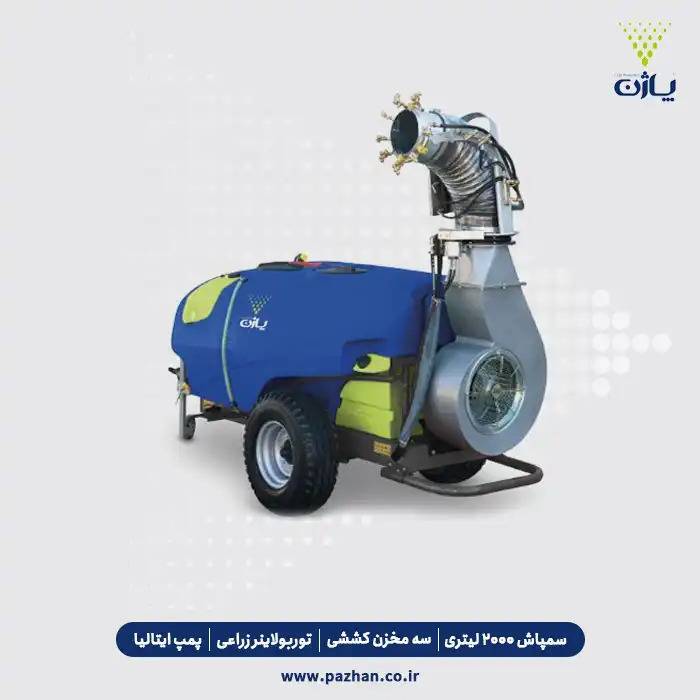 • سمپاش 2000 لیتری توربولاینر زراعی کششی، پمپ ایتالیا، فن سانتریفیوژ، گاردان، پرکن، رینگ و لاستیک